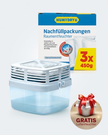 Schnellansicht favorite_border Entfernen von Wunschliste Wunschliste HUMYDRY® Nachfüllpackungen 3x450g für Luftentfeuchter Preis 12,99 € IN DEN WARENKORB