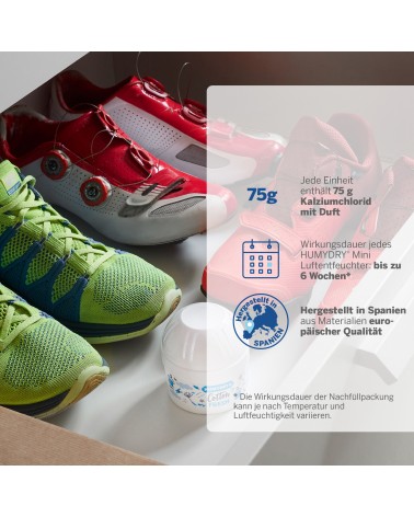 - Der Humydry Luftentfeuchter Mini ist ein Einweg-Produkt (nicht nachfüllbar) und wird in Spanien hergestellt.