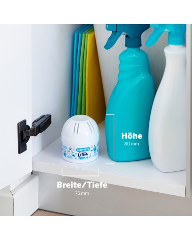 Der Humydry Luftentfeuchter Mini 75g schützt zuverlässig vor zu hoher Luftfeuchtigkeit in kleinen Räumen und sorgt gleichzeitig für einen angenehmen Duft nach frischer Wäsche. Dank seiner Doppelfunktion als Raumentfeuchter und Lufterfrischer beugt er effektiv Schimmel, modrigem Geruch und den typischen Folgen von Feuchtigkeit vor.