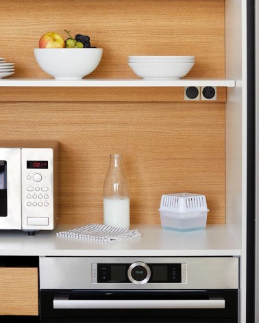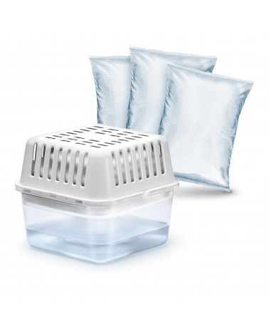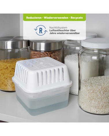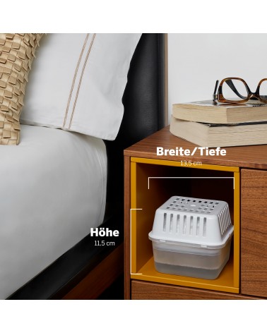 - Wirksame Feuchtigkeitskontrolle: Das hochwertige Granulat nimmt überschüssige Luftfeuchtigkeit auf und verwandelt diese in Flüssigkeit, die sicher im Auffangbehälter gesammelt wird.