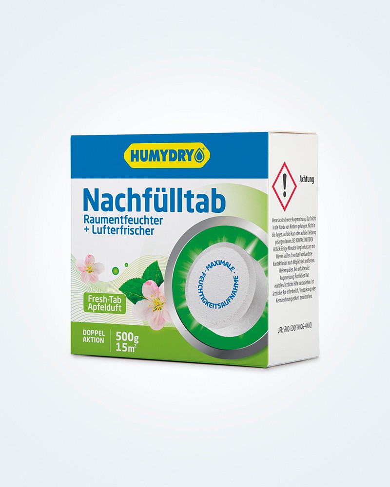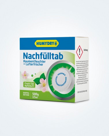 Der HUMYDRY® Nachfülltab 500g absorbiert überschüssige Feuchtigkeit bis ein optimales Feuchtigkeitsgrad erreicht wird (40-60%). Somit schützen Sie Ihre Wohnung und Eigentum vor den Folgen von zu hoher Feuchtigkeit.