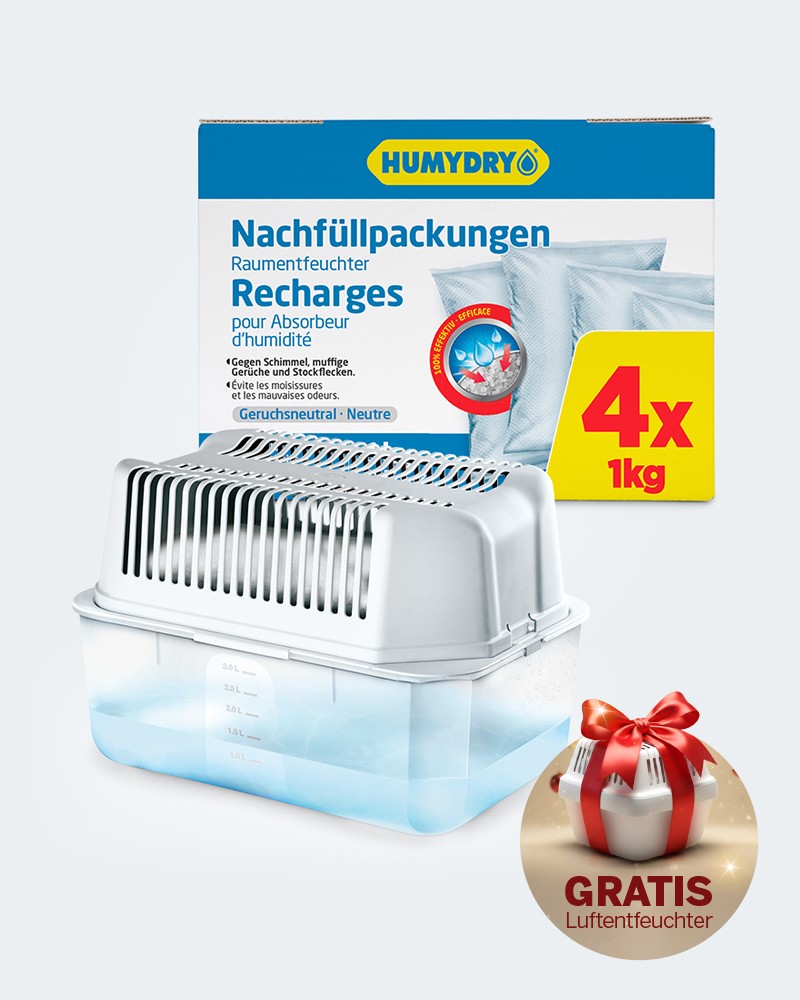 4 HUMYDRY® Raumentfeuchter-Nachfüllpackungen à 1kg