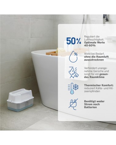 Das hochwirksame Granulat absorbiert die überschüssige Feuchtigkeit bis ein optimales Raumklima herrscht (40-60%)