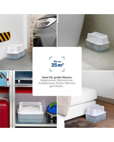 Das hochwirksame Granulat nimmt die zu hohe Feuchtigkeit im ganzen Wohnbereich auf und schützt so vor Schimmelbildung, Stockflecken, Korrosion, Kondensation und muffige Gerüche.
