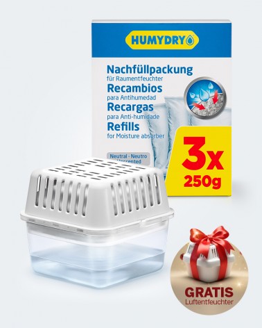 3 HUMYDRY® Raumentfeuchter-Nachfüllpackungen 250g
